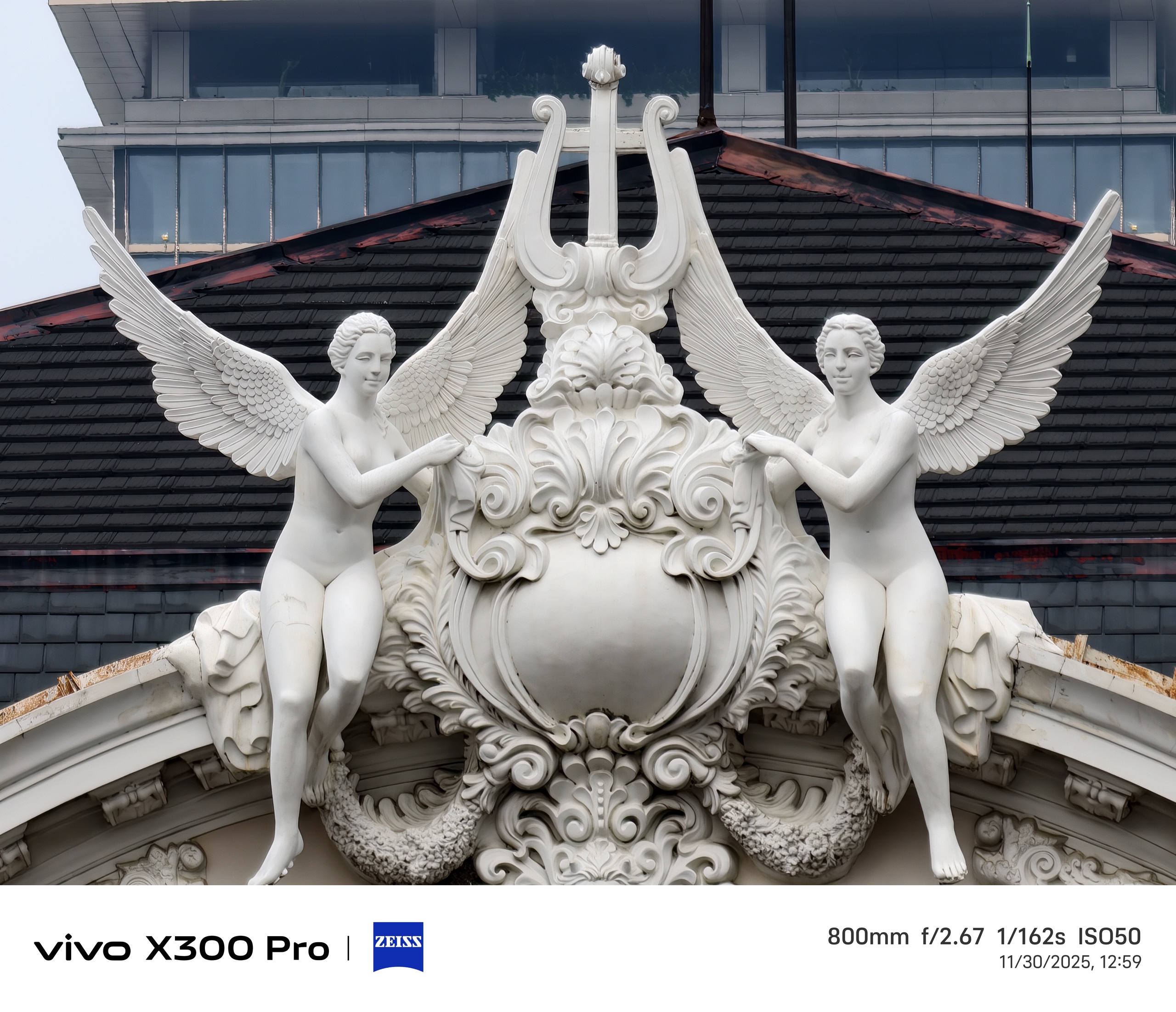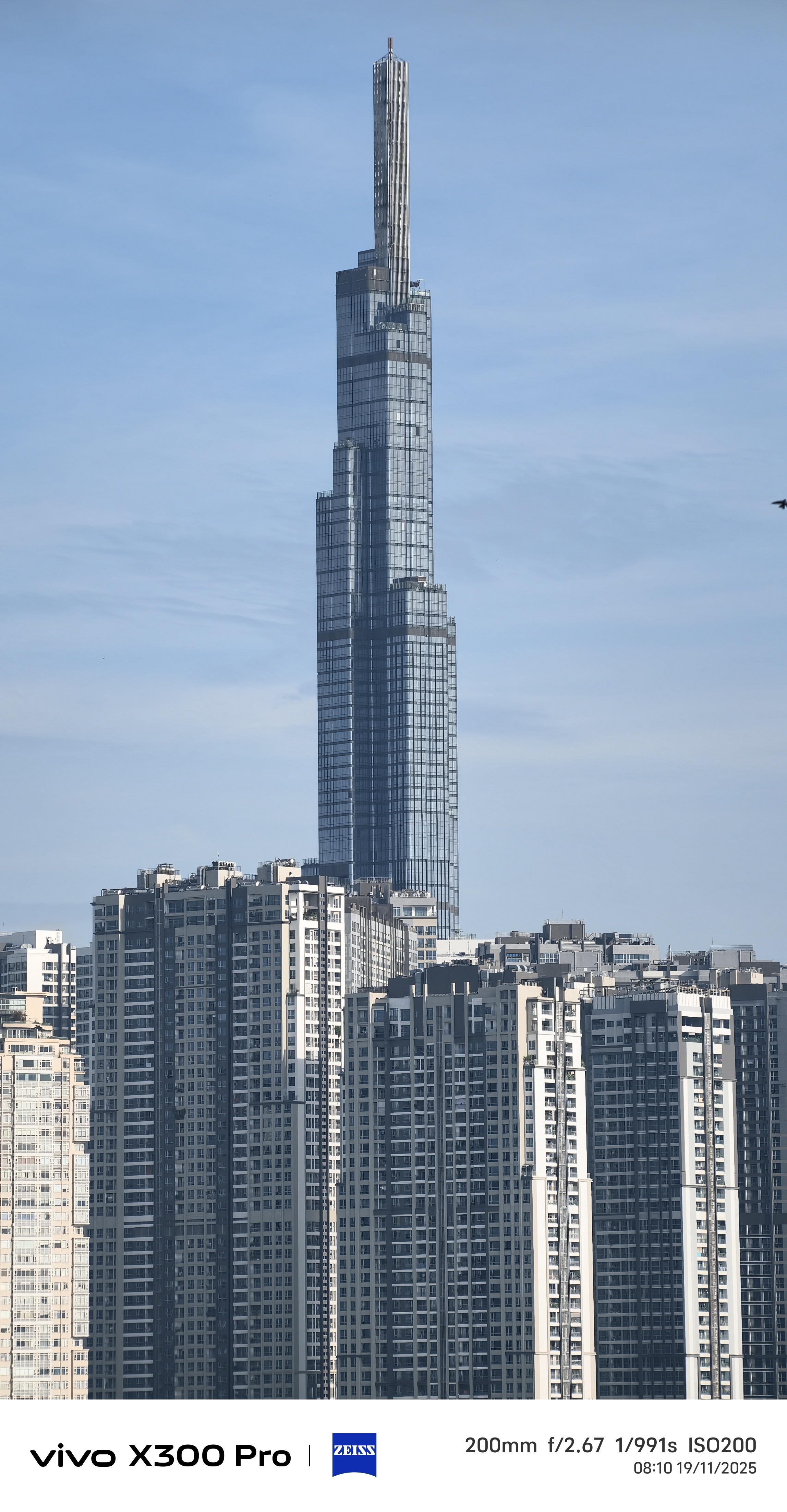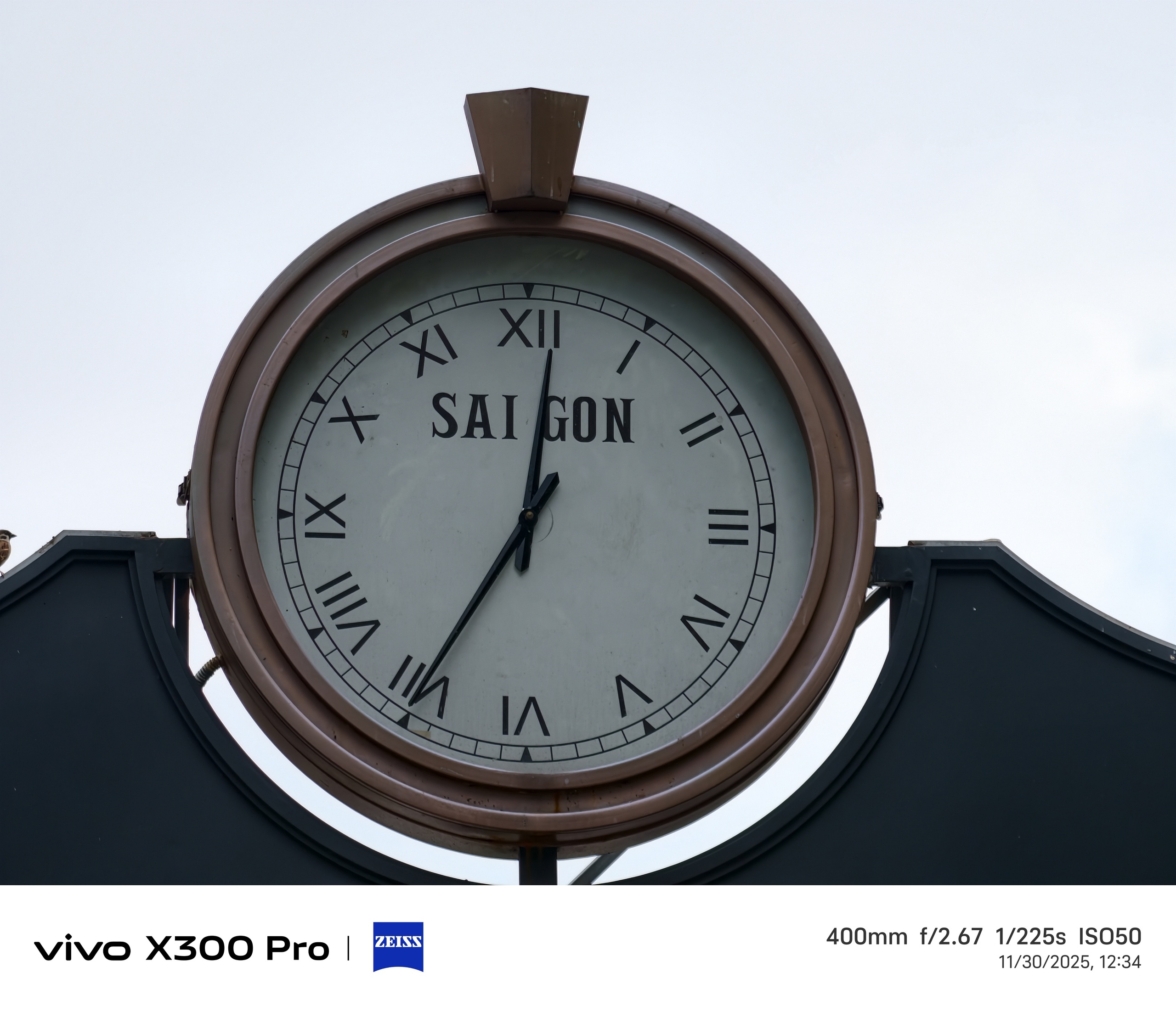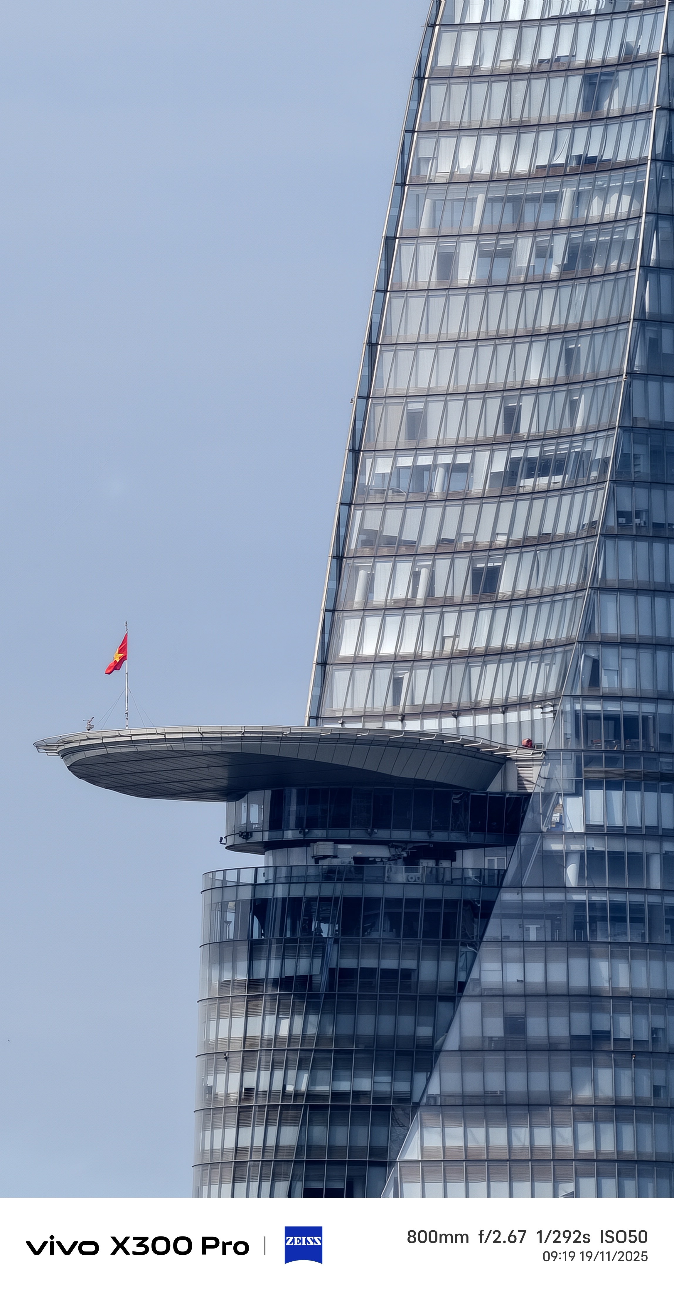 Khi kết hợp với Photographer Kit, X300 Pro có thể zoom xa tới 1.600 mm, cho phép ghi lại chi tiết ở khoảng cách cực xa như mặt trăng, máy bay, hoặc đồng hồ trên đỉnh tòa nhà. Các mức tiêu cự 200 mm, 400 mm và 800 mm vẫn cho ảnh sắc nét, màu sắc ổn định. Chip xử lý hình ảnh VS1 hoạt động hiệu quả trong việc chống rung khung hình, giúp ảnh không bị mờ dù chụp bằng tay. Đây là điểm khác biệt rõ ràng so với hầu hết smartphone cao cấp khác, vốn thường giới hạn ở mức zoom 100x bằng kỹ thuật số.