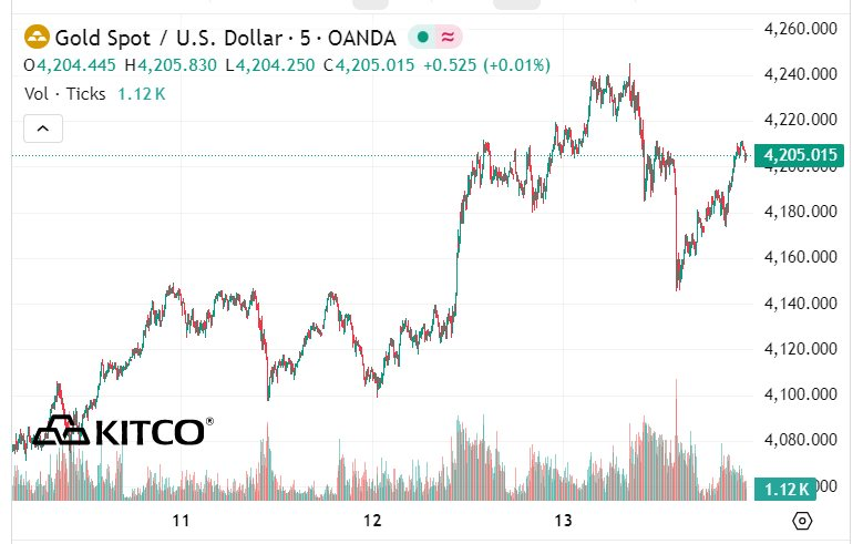 Mới đây, Chính phủ Mỹ đã mở cửa trở lại sau 43 ngày đóng cửa, giúp cải thiện phần nào tâm lý địa chính trị nhưng không làm giảm đà tăng của vàng. Giá vàng giao ngay tiếp tục phục hồi, giữ vững vùng hỗ trợ quanh 4.200 USD/ounce.