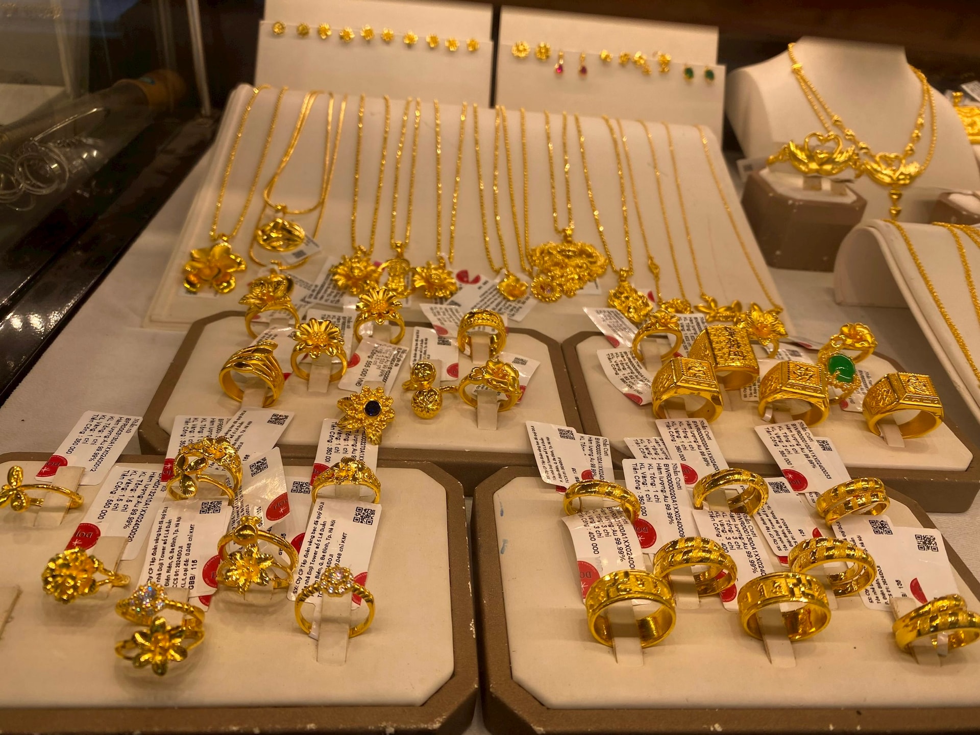 Giá vàng ghi nhận giảm từ 600 nghìn đồng đến 1 triệu đồng mỗi lượng tùy mặt hàng.