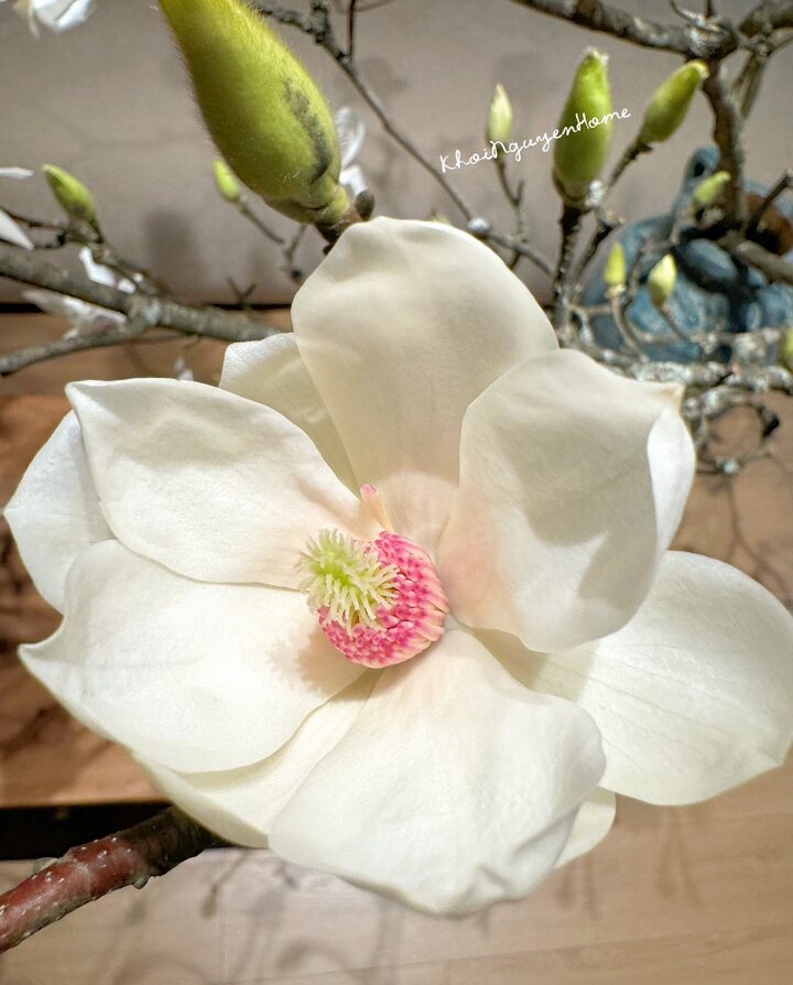 Trên các hội nhóm chơi hoa, trang cá nhân của KOL hay các nàng dâu hào môn, hình ảnh những cành mộc lan lớn, nụ căng tròn, cắm trong chậu gốm giữa phòng khách lan truyền mạnh mẽ tạo nên một “cơn sốt”.
