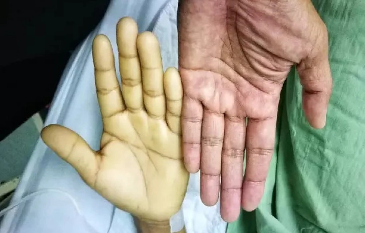 Bàn tay trẻ thiếu máu do uống quá nhiều sữa