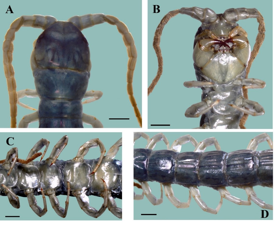 Cụ thể, các đốt lưng từ phần giữa đến cuối thân mang từ năm đến bảy gờ dọc phát triển rõ, kèm theo nhiều gai nhỏ phân bố dày, đặc biệt rõ nét ở các đốt phía sau. Các tấm lưng không có rãnh dọc giữa, trong khi các tấm bụng chỉ có rãnh giữa rất ngắn hoặc không rõ ràng. Chân cuối của loài rết này dài và mảnh, với số lượng cũng như cách sắp xếp gai đặc trưng trên các đốt – đây là những dấu hiệu quan trọng để phân biệt với các loài cùng giống đã được ghi nhận trước đó.