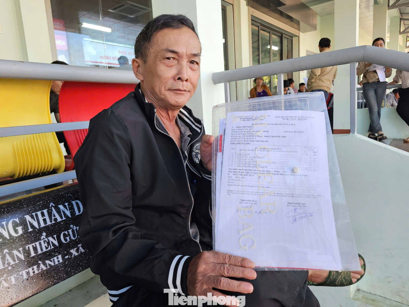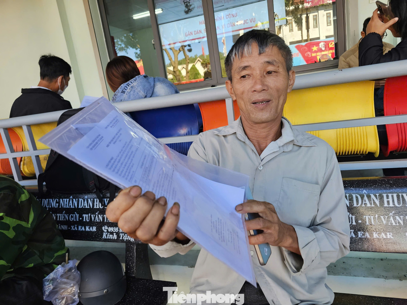 Ông Nguyễn Văn Đệ (xã Ea Ô, tỉnh Đắk Lắk) cho biết, đã đi từ 5 giờ sáng để đến Trung tâm phục vụ hành chính công xã Ea Kar. Dù đi từ sớm nhưng tới nơi đã có rất đông người. Khi nhân viên đến mở cửa, người dân bắt đầu bốc số thứ tự. Ông Đệ bốc số 26 nên ra hành lang ngồi chờ.