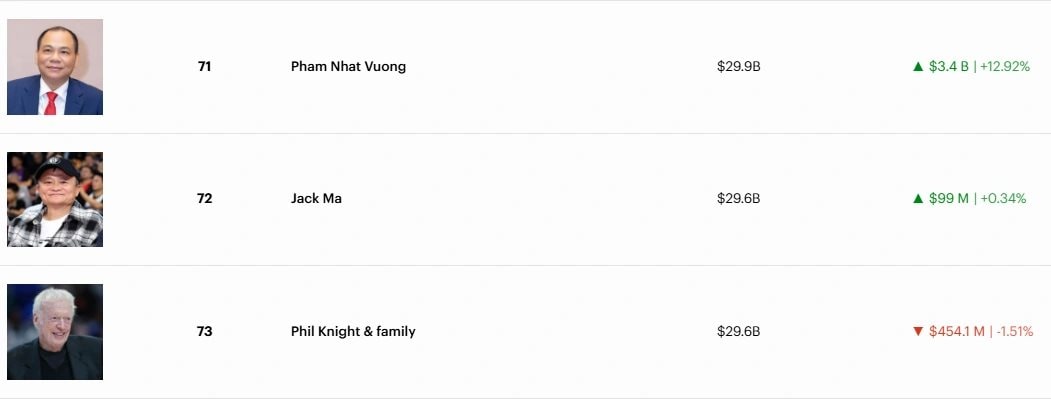 Tài sản của tỷ phú Phạm Nhật Vượng vượt qua tỷ phú Jack Ma và nhiều người khác trong bảng xếp hạng của Forbes.