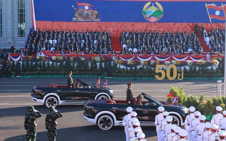 Sự kiện sáng ngày 2/12 tại thủ đô Vientiane, Lào, đã trở thành một cột mốc đáng nhớ, khẳng định vị thế của thương hiệu ô tô Việt Nam trên trường quốc tế. Những chiếc xe điện VinFast VF 9 bản mui trần đã vinh dự đảm nhiệm vai trò xe dẫn đoàn trong lễ diễu binh - diễu hành trọng thể mừng 50 năm Quốc khánh Lào. Đây là lần đầu tiên một mẫu xe Việt Nam được sử dụng trong một sự kiện cấp nhà nước của một quốc gia khác, đánh dấu một bước tiến đáng kể trong hành trình mở rộng dấu ấn thương hiệu VinFast.