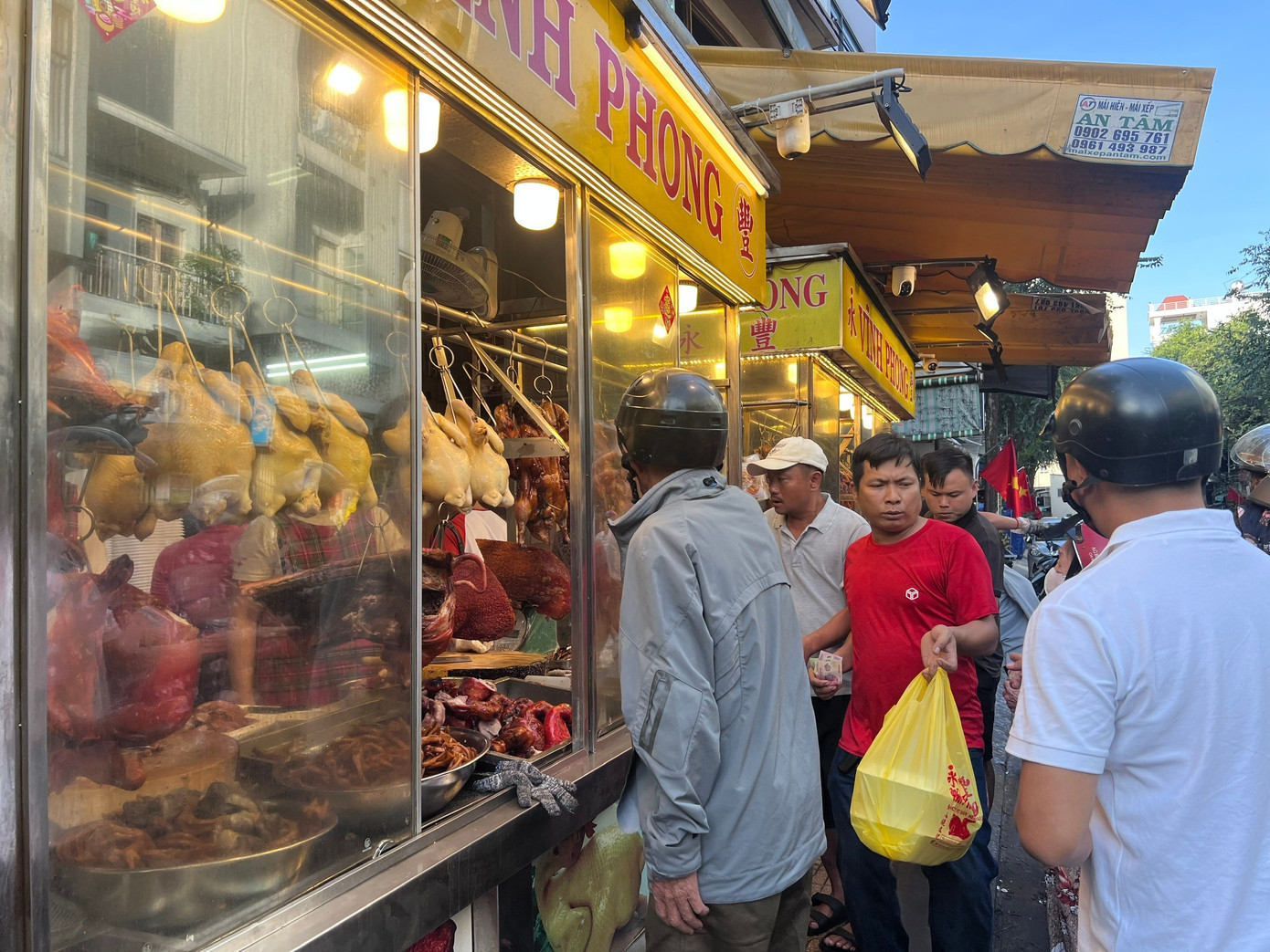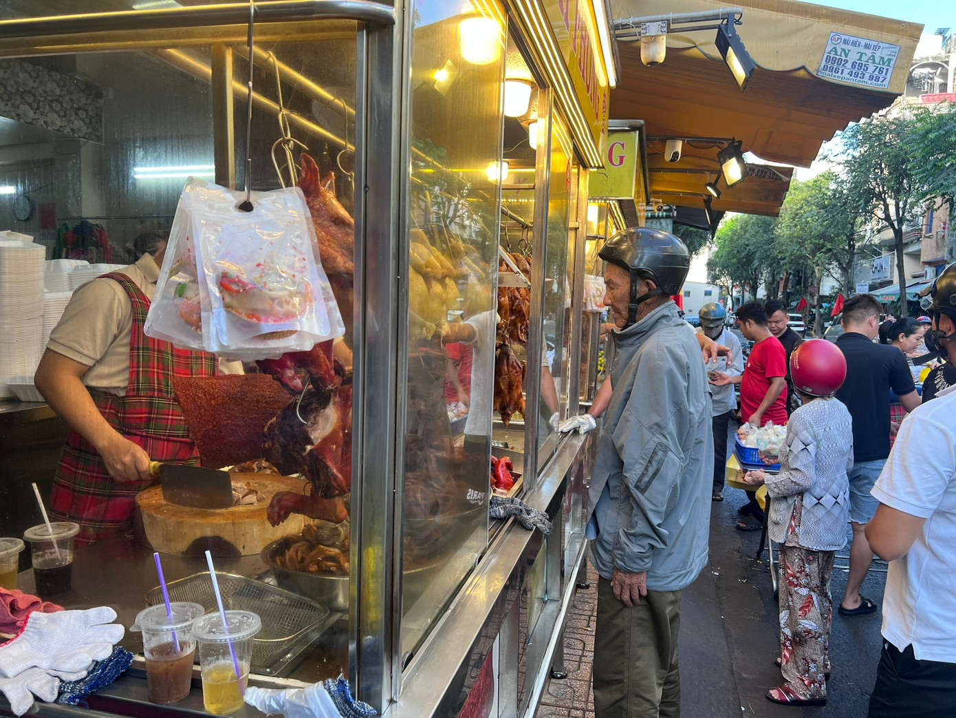 Trong khi đó, cửa hàng vịt quay trên đường Phan Văn Trị (phường An Đông) cũng đông kín khách đến xếp hàng.